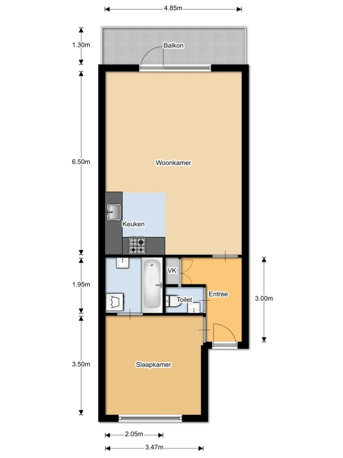Te Huur 2 kamer Appartement Middellaan In Breda